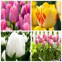 В комплект входят: тюльпан Лайт Энд Дрими+тюльпан Олимпик Флейм+тюльпан Дарвисноу+тюльпан Мистик ван Эйк